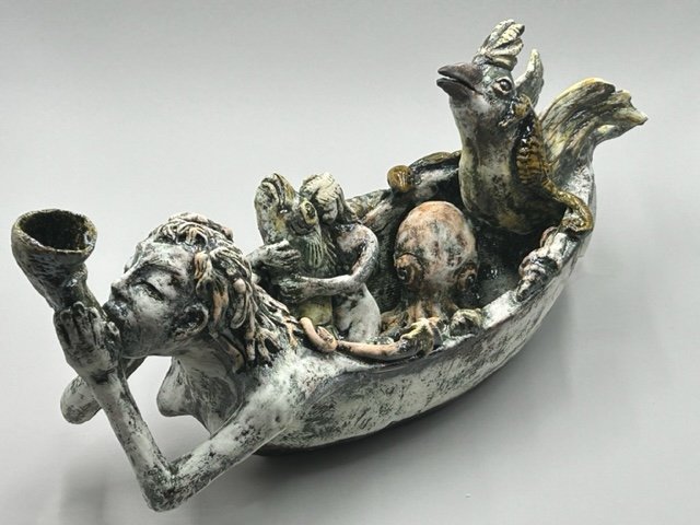 Bird on Hat and Fish Arm
